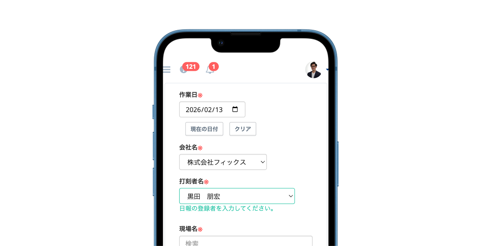 スマホで完結する日報入力機能
